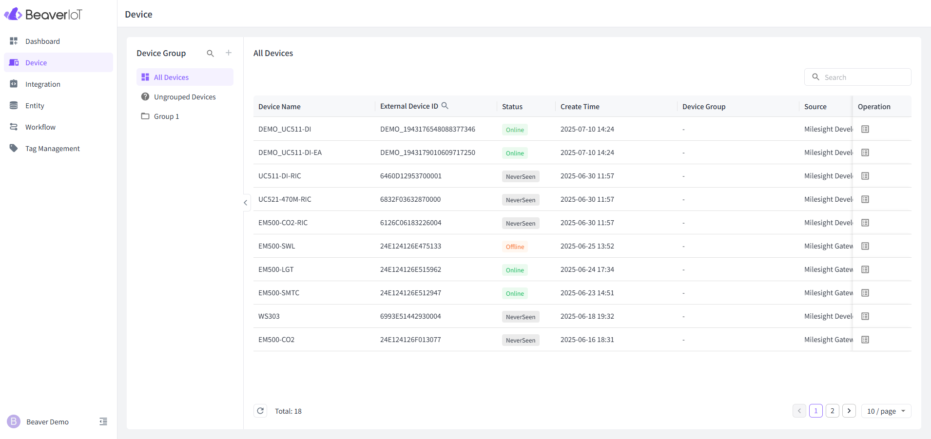 Beaver IoT は、Milesight社が提供するIoTプラットフォームです。