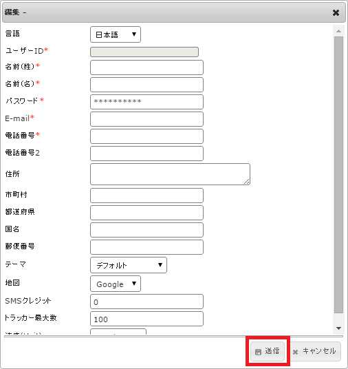 編集完了後[送信]ボタンを選択して下さい。 各項目の説明は、下記の表をご確認下さい。