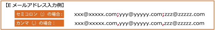 共通する入力項目にEメールアドレスがあります。Eメールアドレスの宛て先は、5件まで指定可能です。