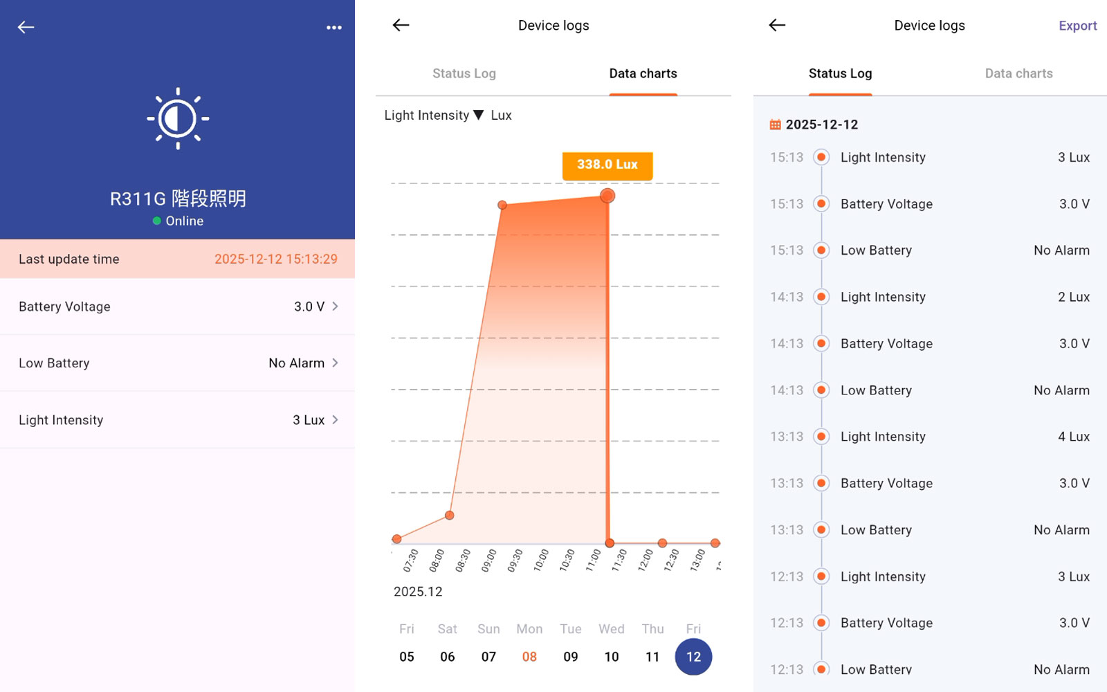 各デバイスの名称変更、表示項目の並び替え、ログの確認(CSV出力可能)、詳細データのチャート表示など、日々の運用で必要となる管理操作をアプリ上で完結できます。