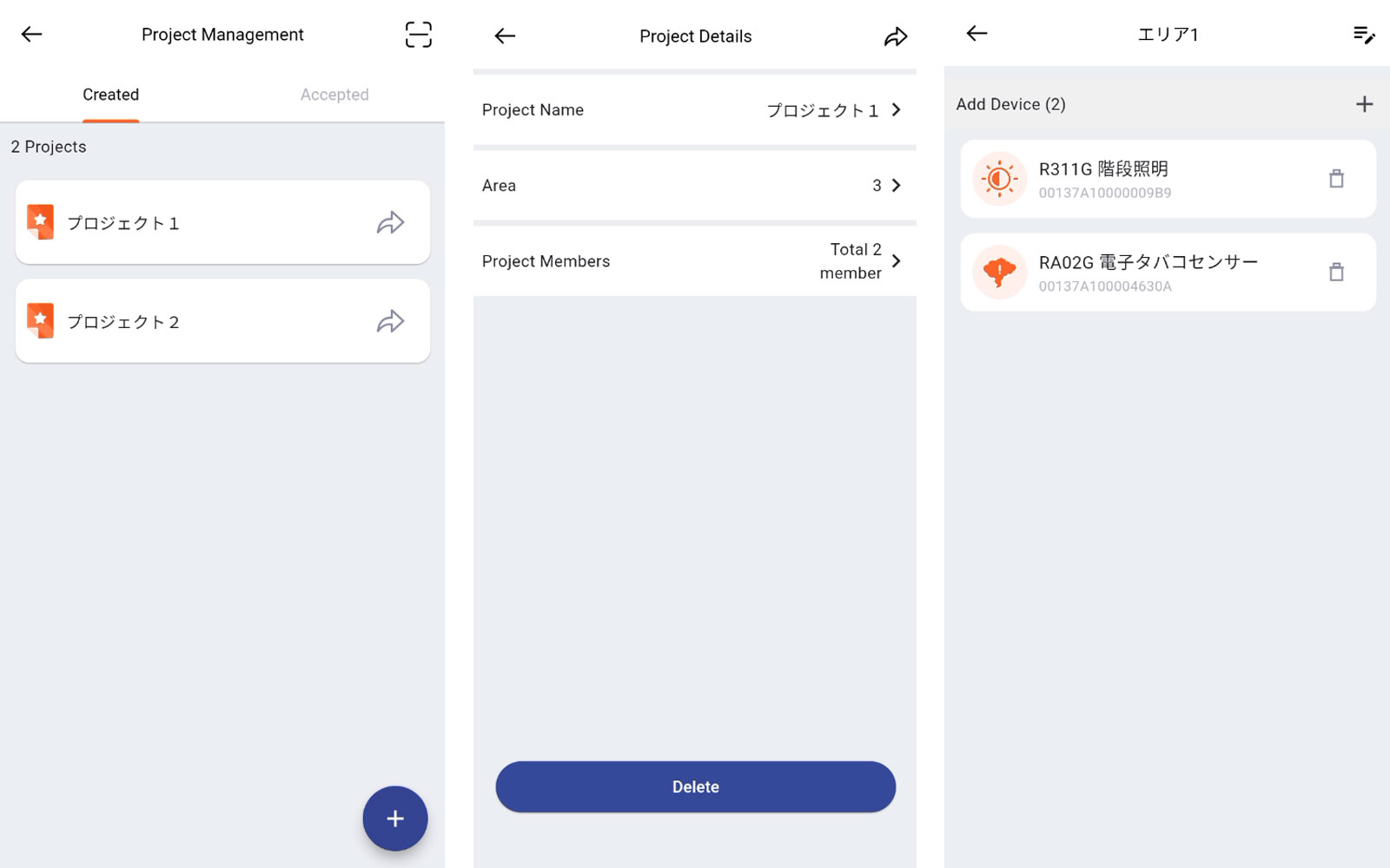 また、案件単位で「プロジェクト」を分けることも可能なため、複数拠点を扱う場合でも整理しやすい構成となっています。